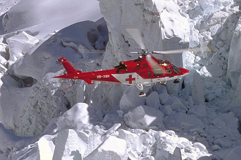 | HB-XWH of Rega on a rescue mission - Photo by Rega-Fotodienst © 1994 | HB-XWH of Rega hovering above a glacier - Photo by Rega-Fotodienst © 1994 |