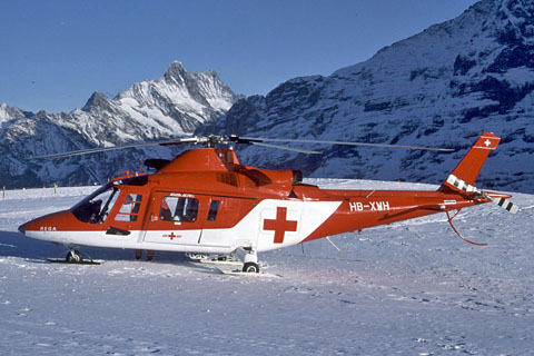 | HB-XWH of Rega during a stop over at Männlichen - Photo by Markus Herzig © 14-Jan-96 | HB-XWH of Rega on the base at Gsteigwiler - Photo by Adrian Herzig © 20-Mar-00 - ANET |