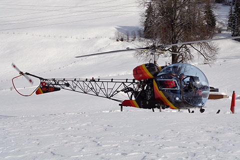 | HB-ZBF of Bruno Grosswiler at Gstaad-Grund heliport - Photo by Ernst Bach © 8-Feb-19 | HB-ZBF of Bruno Grosswiler at Heliweekend Grenchen - Photo by Constantin Chryssanthis © 1-Jun19 |