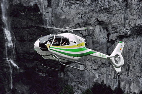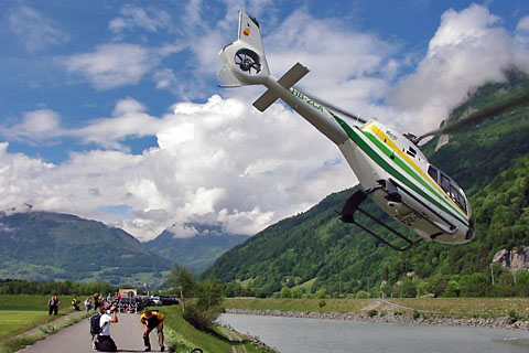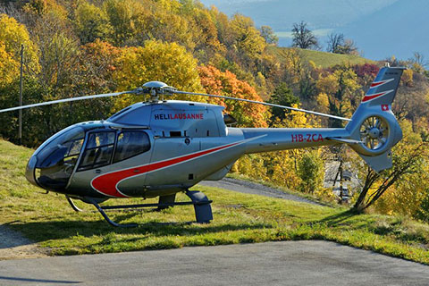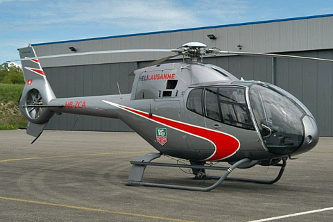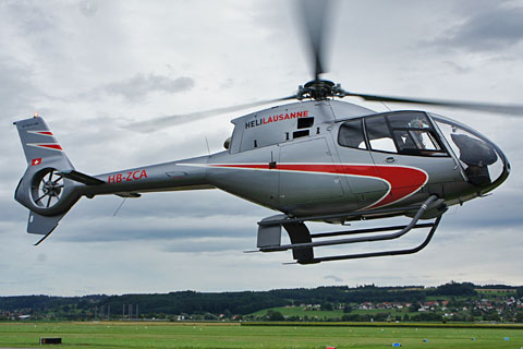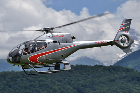 | HB-ZCA of Heli Lausanne with TAG logo at Lausanne - Photo by Werner Häuselmann © 8-May-13 | HB-ZCA of Heli Lausanne taking off at Bex - Photo by Thomas Schmid © 22-Jun-13 |