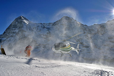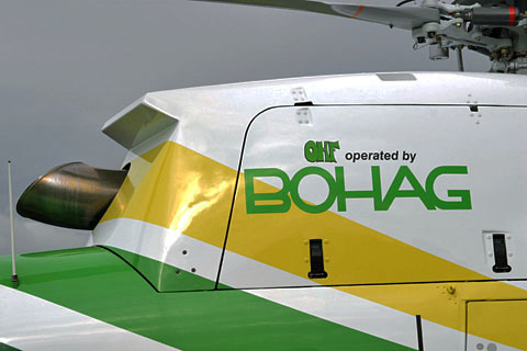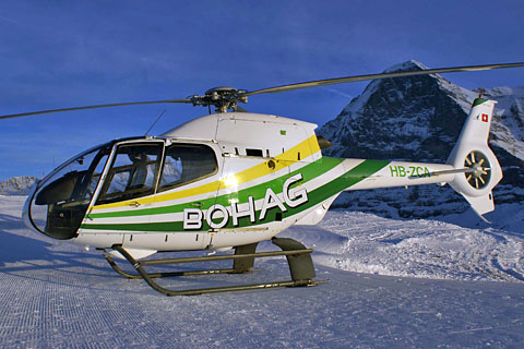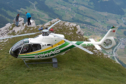 | HB-ZCA now with large BOHAG titles - Photo by Rick Maurer © 29-Jun-07 | HB-ZCA of BOHAG at Maennlichen helipad - Photo by Bruno Siegfreid © 27-Dec-07 |