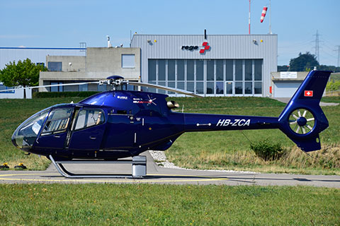 | HB-ZCA of Héli-Lausanne SA in new colors at Lausanne - Photo by Werner Häuselmann © 1-Sep-22 | HB-ZCA of Héli-Lausanne SA at Zürich airport - Photo by Roland Büsser © 9-Mar-23 |