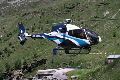 | HB-ZCG of Eliticino SA taking off from Petersgrat - Photo by Nicolas Wittwer © 14-Oct-03 | HB-ZCG of Eliticino SA at Cardada with a beautiful background - Photo by Madian Minoggio © 2004 |
