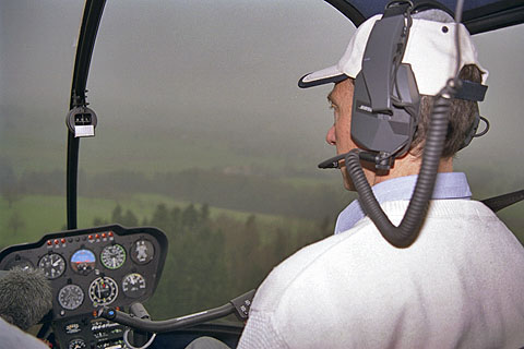 | HB-ZCU of Heli Sitterdorf is the first swiss R44 Raven - Photo by Heli Sitterdorf © 2001 | Handover of HB-ZCU from Valair H.Amrhein to G.Brun - Photo by Markus Herzig © 20-Mar-01 |