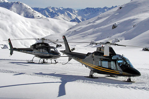 | HB-ZDT of Eliticino SA climbing into the sky over Locarno - Photo by Gianni Testa © 15-Sep-02 | HB-ZCV and HB-ZDT of Eliticino on Alp Trida - Photo by Gianni Testa © 25-Feb-04 |