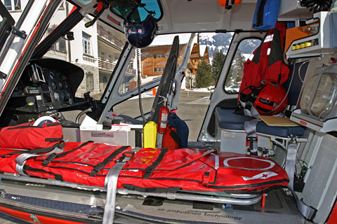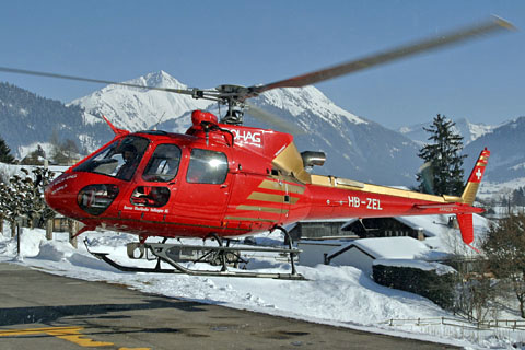 | HB-ZEL of BOHAG approaching the helipad at Saanen hospital - Photo by Markus Herzig © 26-Feb-05 | HB-ZEL of BOHAG equipped for rescue missions at Saanen - Photo by Markus Herzig © 26-Feb-05 |