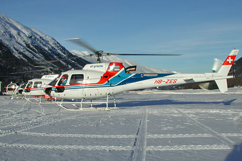 | HB-ZES of Air Grischa at Untervaz - the third B3 of Air Grischa - Photo by SwissHeli.com © 10-Jan-03 | HB-ZES on the snow covered ramp at Samedan - Photo by Air Grischa © 15-Jan-03 |