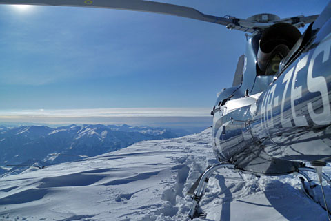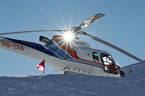| HB-ZES of Eagle Helicopter at Wildhorn - Photo by Nick Müller © 6-Sep-11 | HB-ZES of Eagle / Heliksir Georgia at Mt Sadzele above Gudauri - Photo by Beat Schütz © 22-Jan-12 |