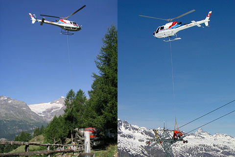 | HB-ZES at Puschlav and Furtschellas 2500m - Photos by Nino Martocchi © 2003 and 3-May-06 | HB-ZES of Eagle Helicopter at Le Creux-de-Nax - Photo by Alexandre Praz © 5-Jan-07 |