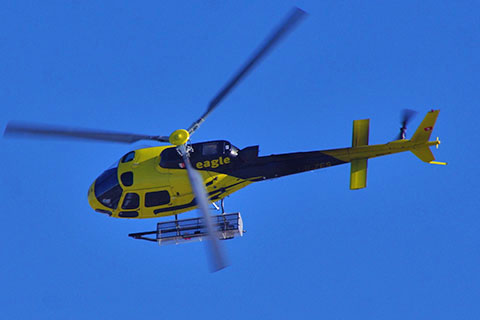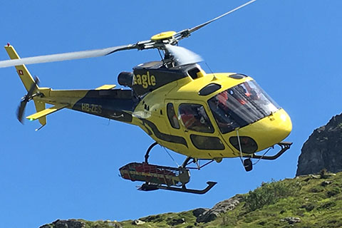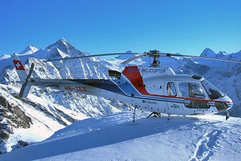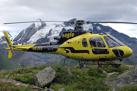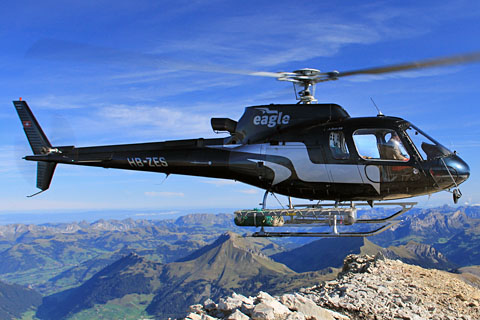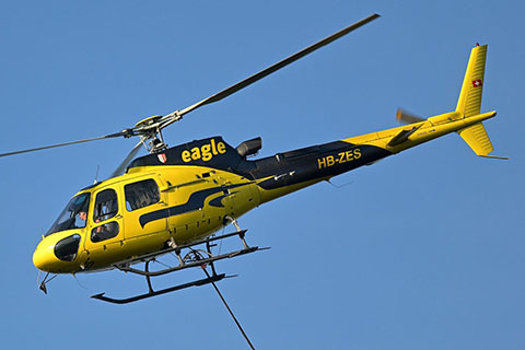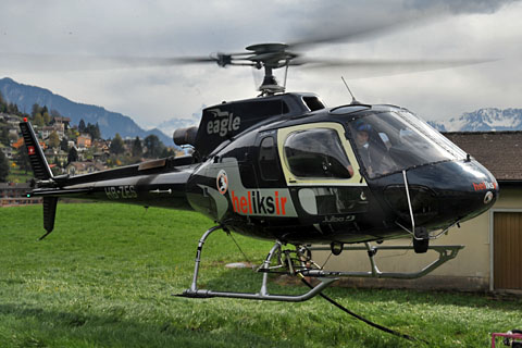 | HB-ZES at Sion now in full Eagle Helicopter livery - Photo by Ralf Tonezzer © 24-Dec-09 | HB-ZES of Eagle Helicopter during Grand Raid 2011 - Photo by Claude Troillet © 20-Aug-11 |