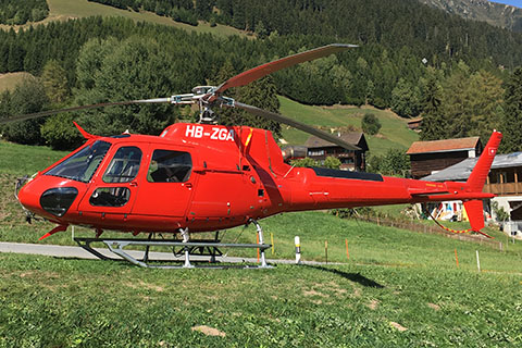 | HB-ZGA with Heli Air AG titles in the region of Zermatt - Photo by Hans Zurniwen © 31-Mar-19 | HB-ZGA with Heli Air AG titles at Flims - Photo by Roland Küng © 1-Jul-20 |