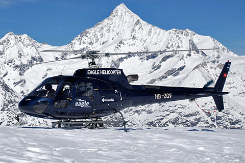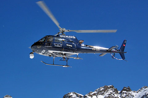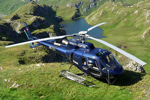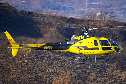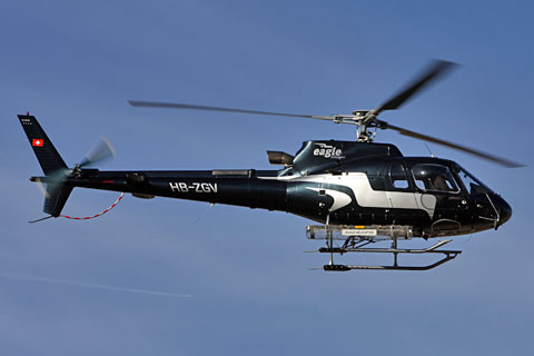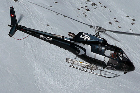 | HB-ZGV approaching the base at Sion airport - Photo by Ralf Tonezzer © 18-Jan-10 | HB-ZGV of Eagle Helicopter AG in its new livery - Photo by Claude Troillet © 8-May-14 |