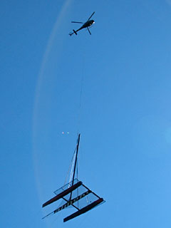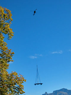 | HB-ZGV of Eagle longline with an Alinghi boat at Vevey - Photo by Geneviève Guérite © 10-Oct--05 | HB-ZGV of Eagle Helicopter in the approach to Rosablanche - Photo by Lionel May © 8-Jan-06 |