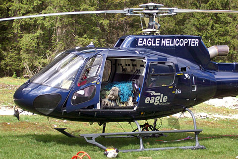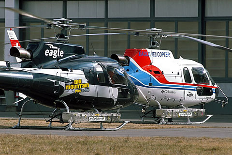 | HB-ZGV of Eagle Helicopter at Unterrothorn - Photo by Peter Zurniwen © 5-Apr-07 | HB-ZGV at Schwarzbachwacht, Ramsau, Germany - Photo by Lorenz Resch © 5-May-07 |