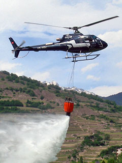 | HB-ZGV of Eagle Helicopter near Petit Combin - Photo by Raphy Troillet © 27-Apr-08 | HB-ZGV during a Bambi bucket demo at Sion - Photo by Jean-Etienne Allet © 17-May--09 |