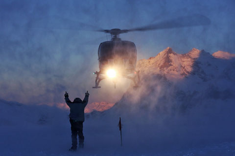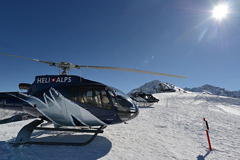 | HB-ZIN and 2 Ecureuil of Heli Alps at Croix-de-Cœur for heliskiing - Photo by Joel Bessard © Mar-16 |