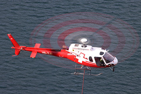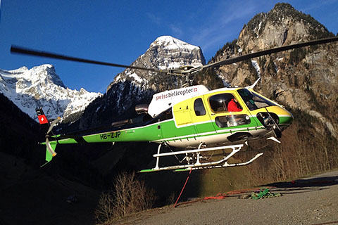 | HB-ZJP of Swiss Helicopter AG early morning at Isenthal - Photo by Pascal Kröpfli © Apr-15 | HB-ZJP of Swiss Helicopter AG at Unterrothorn - Photo by Hans Zurniwen © 23-Feb-19 |