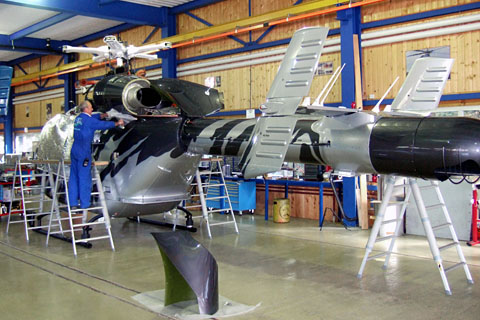 | HB-ZKE in the final assembly at Schindellegi - Photo by Thomas Wyss © 8-Apr-09 | HB-ZKE at Schindellegi during the first flight - Photo by Robert Stokmaier © 16-Apr-09 |