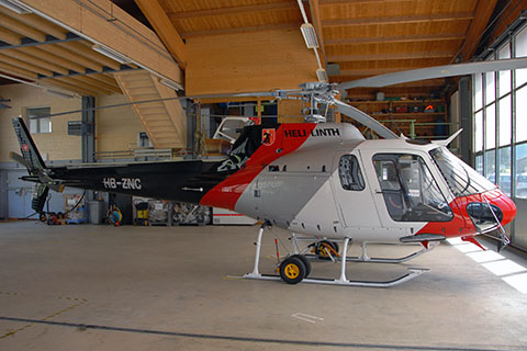 | HB-ZNC of Europavia (Suisse) SA at Bern-Belp after delivery - Photo by Markus Kohler © 26-Nov-13 | HB-ZNC of Heli-Linth AG in full company colors at Mollis - Photo by Armin Hässig © Jun-14 |