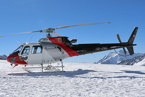 | HB-ZNC of Heli-Linth AG in the Muttsee region - Photo by Daniel Pfeiffer © 9-Dec-16 | HB-ZNC of Heli-Linth AG at Jungfraujoch - Photo by Armin Ackermann © 8-Apr-17 |
