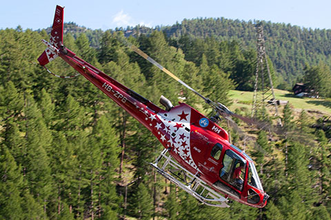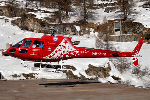 | HB-ZPB of Air Zermatt AG at the homebase - Photo by Peter Zurniwen © 27-Feb-12 | HB-ZPB of Air Zermatt AG approaching Zermatt heliport - Photo by Hans Zurniwen © 13-Feb-13 |