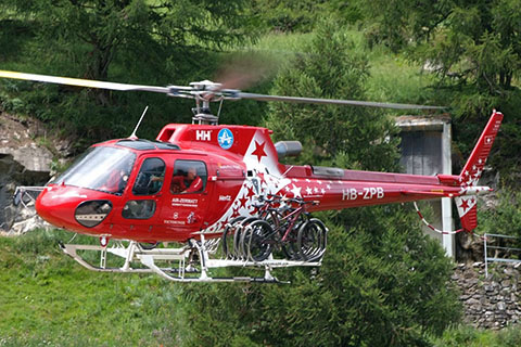 | HB-ZPB of Air Zermatt AG at Zermatt taking off for Helibike - Photo by Martin Dällenbach © 28-Jul-21 | HB-ZPB of Air Zermatt AG at Zermatt heliport - Photo by Hans Zurniwen © 1-Sep-21 |