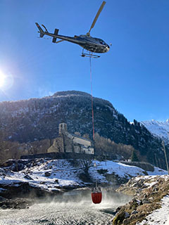 | HB-ZPD of Heli Rezia AG in Valle Verzasca - Photo by Oliver Colombi © 30-Jul-20 | HB-ZPD of Heli Rezia AG on top of a mountain in Valle Calanca - Photo by Luca Agosti © Feb-21 |
