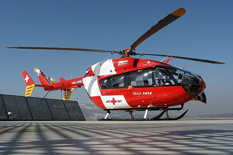 | HB-ZRB at Basel airport as the 1st EC-145 in service - Photo by Gerard Fabich © 22-Feb-03 | HB-ZRB of Rega on the base at Lausanne - Photo by Joel Bessard © 21-Apr-03 |