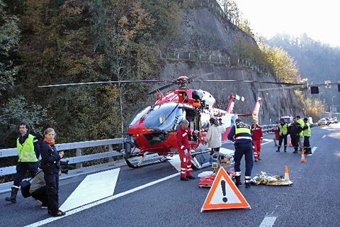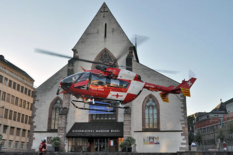 | HB-ZRB during a rescue exercise in front of the tunnel de Glion - Photo by Reynold Favre © 30-Oct-05 | HB-ZRB arriving for the Rega open day at Basel Barfüsserplatz - Photo by Gerard Fabich © 18-Aug-12 |