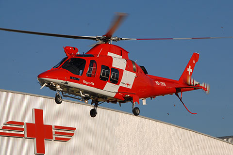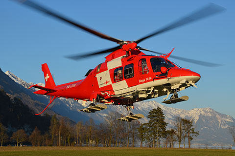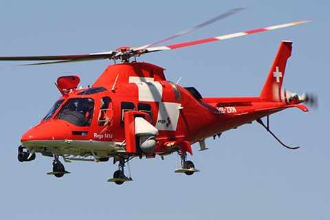 | HB-ZRN of Rega Swiss Air Ambulance at Zweisimmen - Photo by Andre Michel © 28-Jul-17 | HB-ZRN of Rega at Wilderswil equipped with an IR/EOS system - Photo by Hans Alder © 1-Oct-19 |