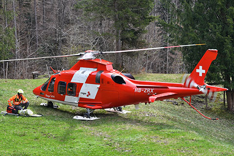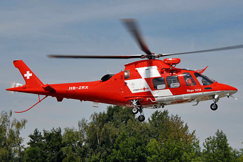 | HB-ZRX arriving at Zurich airport on delivery - Photo by Beat Levy © 31-Jul-09 | HB-ZRX of Rega during takeoff from the St.Gallen base - Photo by Paul Ulrich © 16-Jul-11 |