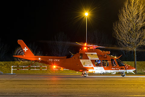 | HB-ZRX of Rega at Vaduz during a night mission - Photo by Eric Oberhofer © 24-Mar-15 | HB-ZRX of Rega during a rescue flight at Triesen FL - Photo by Eric Oberhofer © 9-Apr-21 |