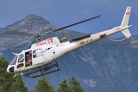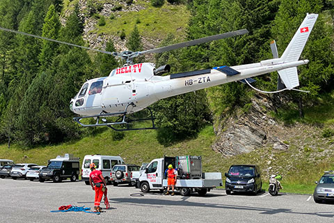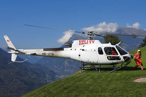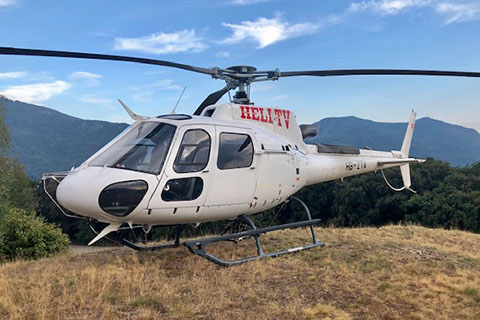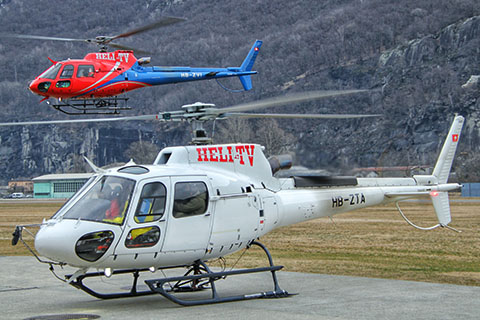 | HB-ZTA of Heli-TV SA during a stop at Alpe Vicania - Photo by Pascal Deffeyes © 19-Augl-20 | HB-ZTA and HB-ZVI of Heli-TV SA at Lodrino - Photo by Michele Ceresa © 20-Feb-21 |