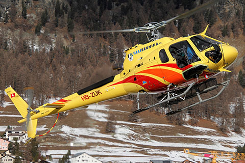 | HB-ZUK of Heli Bernina AG at Samedan airport - Photo by Roland Büsser © 2-Jan-23 | HB-ZUK of Heli Bernina AG approaching Samedan - Photo by Joel Bessard © 28-Dec-23 |