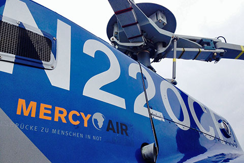 | N220CF of Mercy Air Helicopter Inc in full company livery - Photo by Matthias Reuter © 19-Mar-15 | N220CF of Mercy Air Helicopter in Mozambique - Photo by Mercy Air Switzerland © 2019 |
