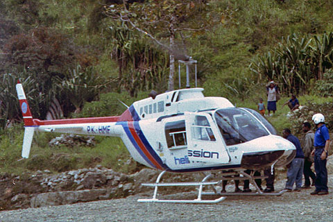 | Registered as HB-XLL at Bern-Belp prior delivery to Irian Jaya - Photo by Markus Herzig © 2-Oct-97 | PK-HMF of Helimission during operations in Papua - Photo by Helimission © 2002 |