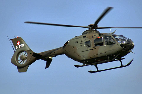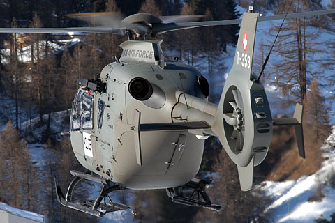 | T-359 in the air over Alpnach - Photo by Bruno Siegfried © 21-Apr-09 | T-359 at Davos operating for the Police during the WEF - Photo by Werner Häuselmann © 29-Jan-11 |