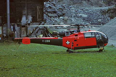 | V-206 in Helu-Test livery at Fiesch - Photo by Werner Häuselmann © 24-Aug-88 | V-206 of Swiss Air Force on display at Alpnach - Photo by Thomas Schmid © 26-Jun-04 |