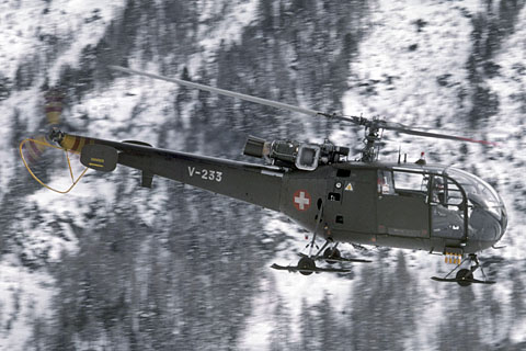 | V-233 during takeoff from Samedan - Photo by Markus Herzig © 1-Feb-99 | Former V-233 of Swiss Air Force displayed at Unteriberg - Photo by Martin Dällenbach © 4-Aug-15 |