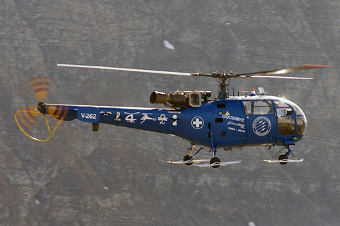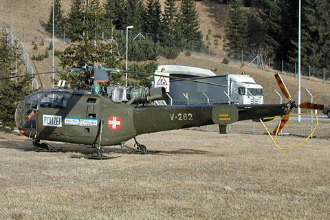 | V-262 during Police mission at San Bernardino - Photo by Sven Fehler © 13-Dec-01 | V-262 in the "Goodbye Alouette 3" look at Axalp - Photo by StéphaneRaymond © 12-Oct-10 |