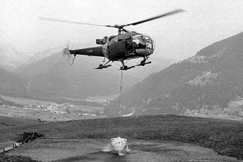 | V-262 of Swiss Air Force during firefighting in Münstertal - Photo Flugarchiv Graubünden © 1970's | V-262 with Gardes Frontiere titles at Bern-Belp - Photo by Markus Herzig © 18-Sep-00 |