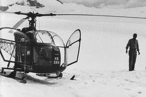| V-47 of Swiss Air Force with an outside stretcher - Photo Flugarchiv Graubünden © 1980's |