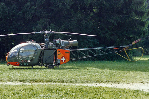 | V-62 of Swiss Air Force - Photo Flugarchiv Graubünden © 1970's | V-62 of Swiss Air Force at Reichenbach - Photo by Adrian Rösti © Oct-89 |