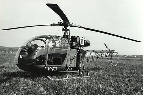 | V-63 of Swiss Air Force at Dübendorf - Photo by VBS © 1970s | Previous V-63 as HB-XYB of Alouette Swiss SA at Bern - Photo by Markus Herzig © 19-Jun-11 - MHP |